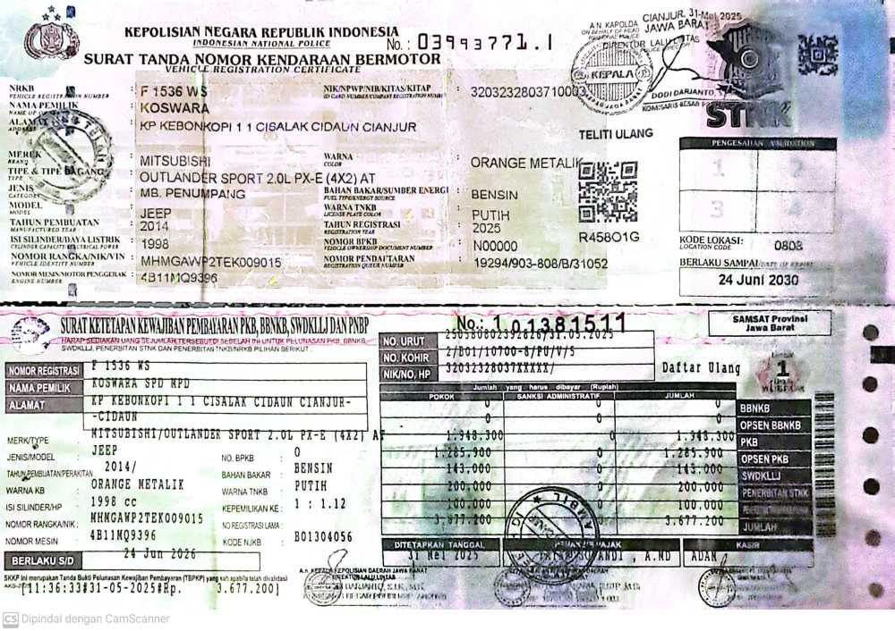 No. Polisi | : | F1536WS |