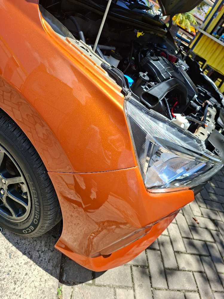 | Hasil qc Kategori : B *-* pernah mengalami benturan pada pagian belakang,minus akibat pemakaian *-* cat body mengalami gradasi warna ,lecet ,penyok dan bekas semen akibat pemakaian *-* tutup toing bemper depan tidak ada, velg lecet dan talang air kena serpihan cat putih ,minus akibat pemakaian |