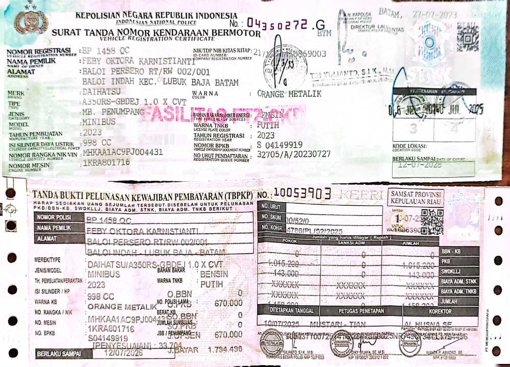 | No. Polisi | : | BP1458QC |