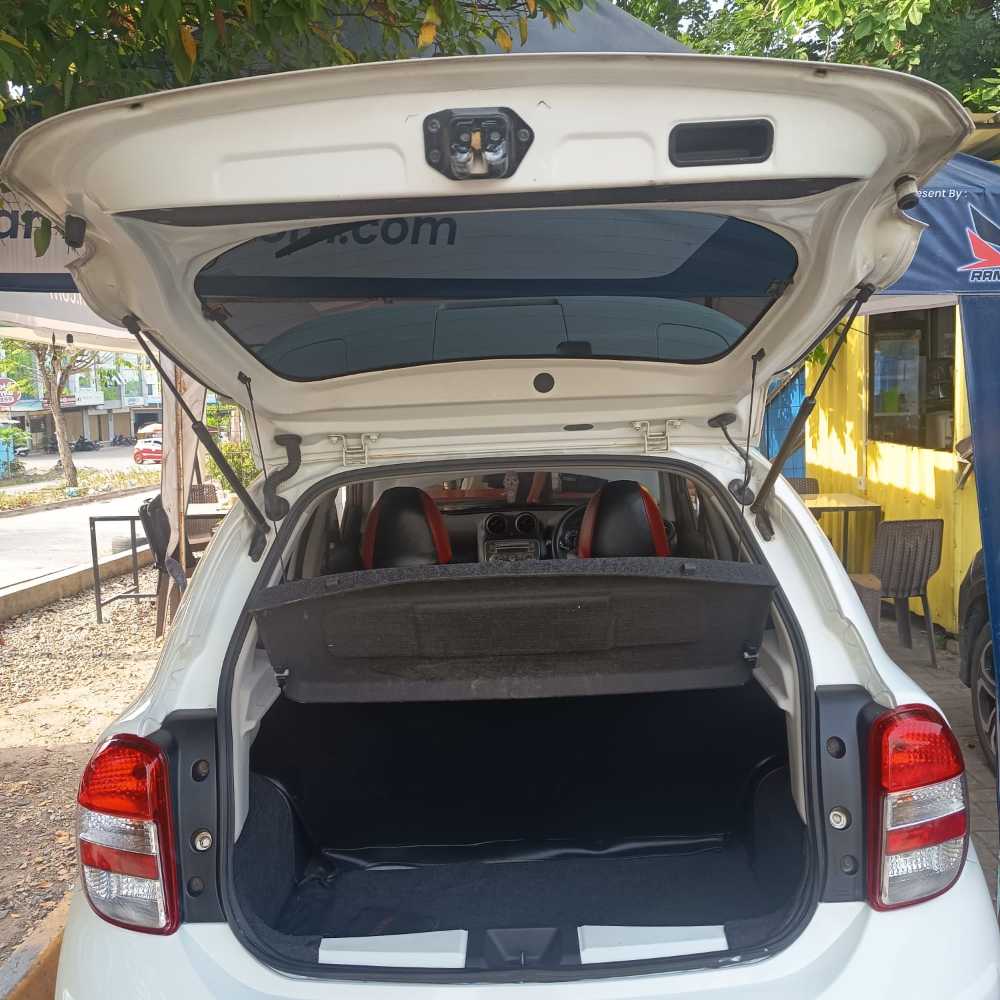 | Fitur Kendaraan * Mesin 1.2L, 3 silinder, irit BBM * Transmisi otomatis (A/T) * AC * Power window & power steering * Central lock + remote * Airbag (dual SRS) * Rem ABS * Audio (radio/CD/USB/AUX) * Spion elektrik * Kursi baris belakang lipat Catatan Hasil QC Kategori : B -Layak pakai dengan tanda pemakaian wajar Lapisan peredam pada bagian dalam kap mesin sudah tidak tersedia. Area penyimpanan ban serep terdapat lecet akibat pemakaian. Velg mengalami lecet di beberapa bagian, kemungkinan akibat gesekan Jok kendaraan telah menggunakan sarung kulit (custom/aftermarket). Cover spion fender tidak ada (1 pcs) Salah satu penutup spion samping/fender |