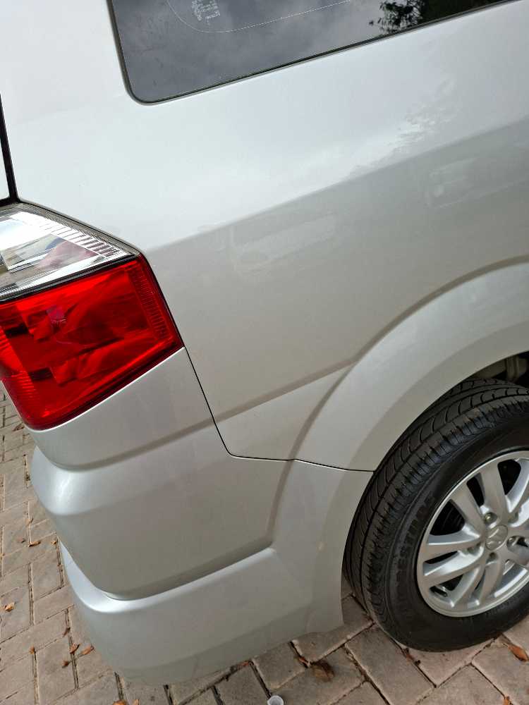 | Catatan Hasil QC Kategori : B – Layak pakai dengan beberapa tanda pemakaian wajar 1. Mesin & Performa - Aki baterai tampak mengembung. - Saat perpindahan gigi, tuas terasa agak renggang. 2. Eksterior & Body - Body mengalami gradasi warna. - Body terdapat goresan kecil akibat pemakaian. - Mika lampu kiri depan tampak sedikit menguning. 3. Interior - Plafon menunjukan tanda pakai wajar - Jok menunjukkan tanda pemakaian. |