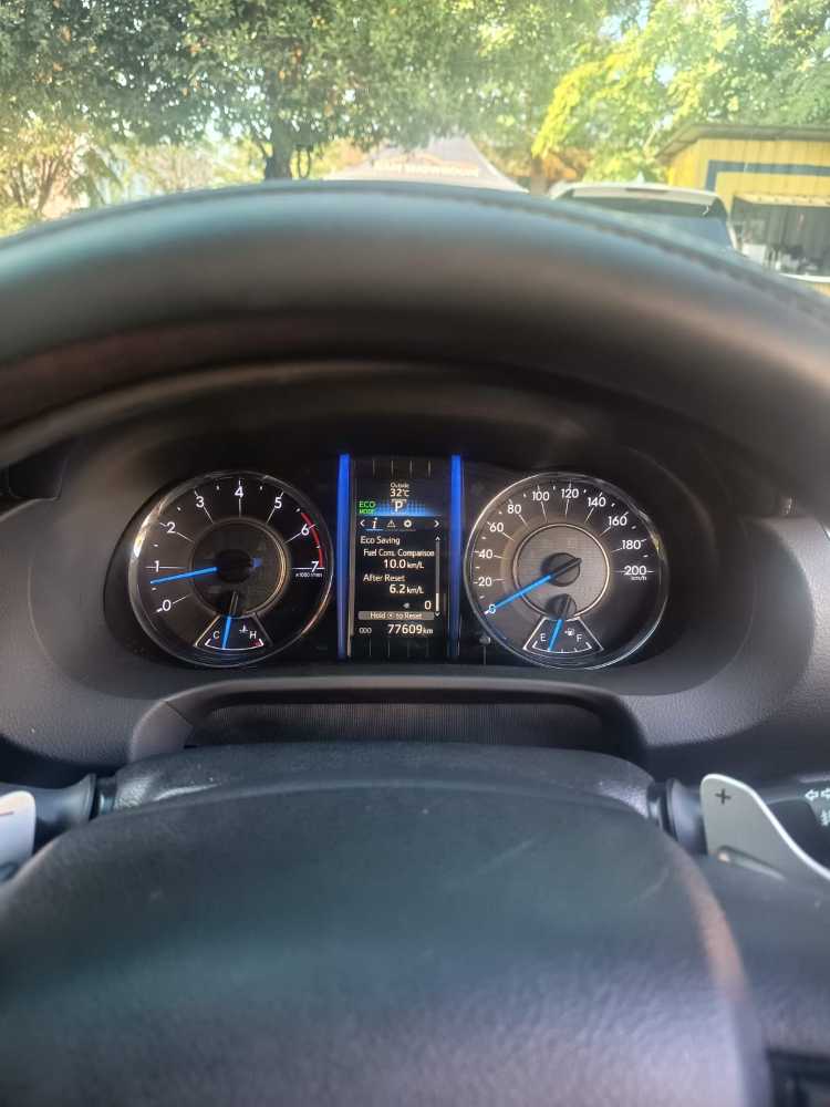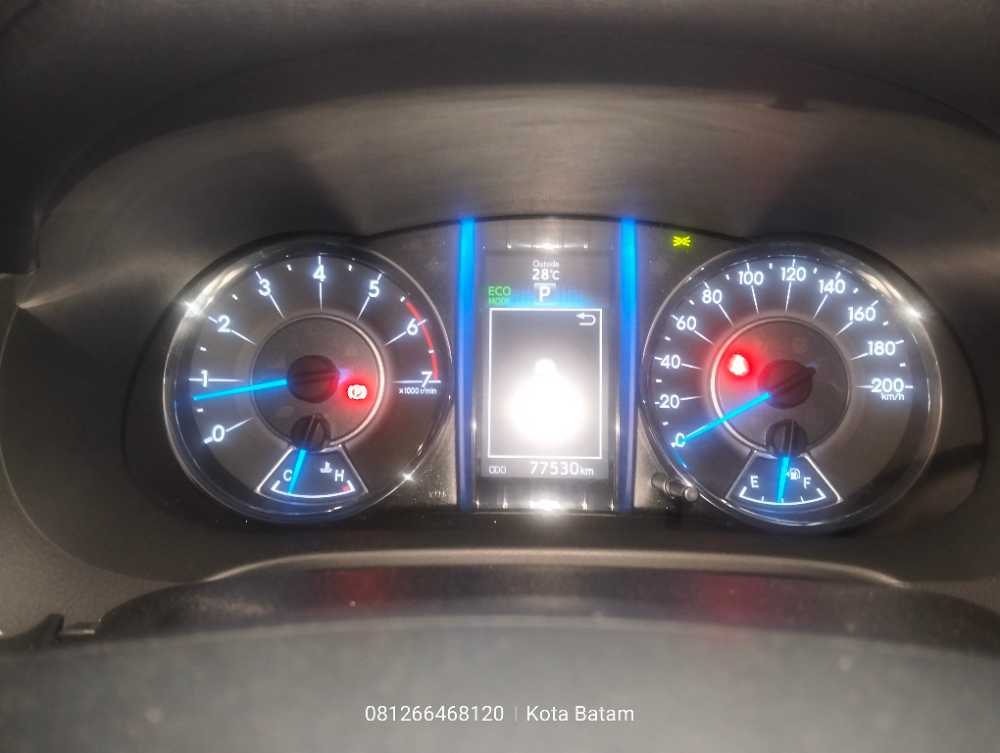 | Fitur Kendaraan Mesin bensin 2.7L VVT-i Transmisi otomatis Keyless entry & push start button Head unit touchscreen + Bluetooth Kamera mundur AC digital dual zone Cruise control Jok kulit Power seat pengemudi Steering switch audio Airbag depan & samping ABS, EBD, VSC, TRC Velg alloy Lampu LED & DRL Catatan Hasil QC Kategori : A -Layak pakai dengan tanda pemakaian wajar Cover footstep kanan terdapat lecet akibat pemakaian harian. Kaca flem depan terdapat minus berupa garis halus,masih aman digunakan. Body kap mesin terdapat bintik-bintik kecil pada cat, termasuk minus pemakaian. |