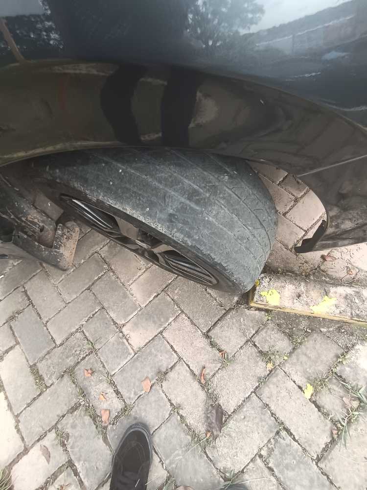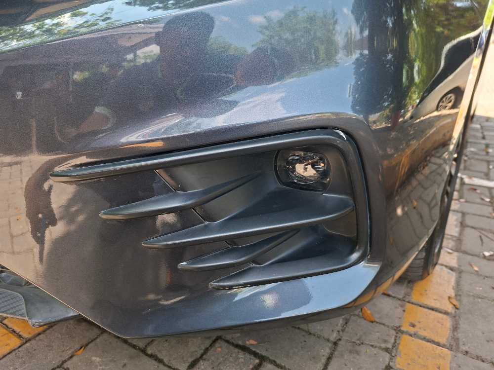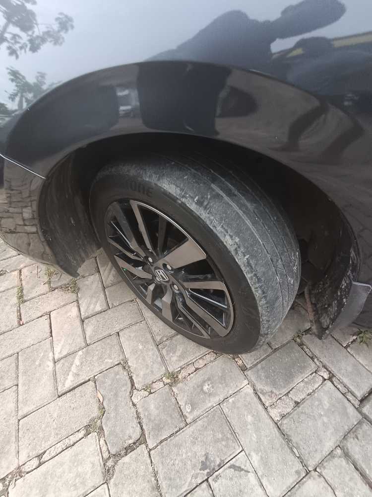 - Mika lampu depan kanan retak, frame plat nomor depan retak, dan plat nomor sedikit berubah bentuk.