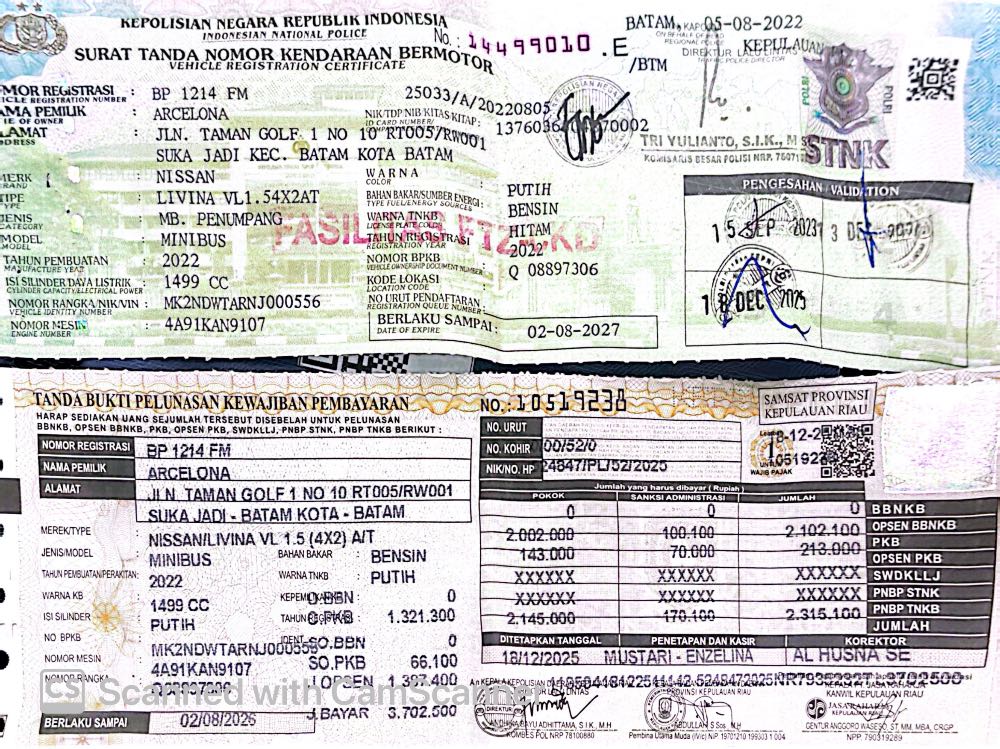 | No. Polisi | : | BP1214FM |
