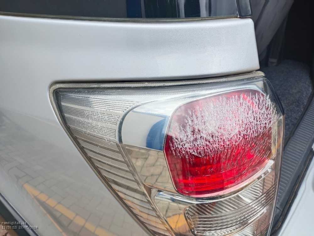 | *-* ekor bemper miring *-* plafon berbulu *-* sun visor kotor *-* mika lampu belakang retak *-* rembes mesin *-* kaca depan pecah 2 titik *-* emblem banyak yg tidak ada *-* peredam kap mesin minus pemakaian *-* karpet dasar penumpang koyak. Nampak kabel kabel *-* penutup hitaman vender kiri belakang tidak ada *-* celah pintu bagasi kusam *-* cover ban serap longgar *-* spion kabin minus pemakaian |