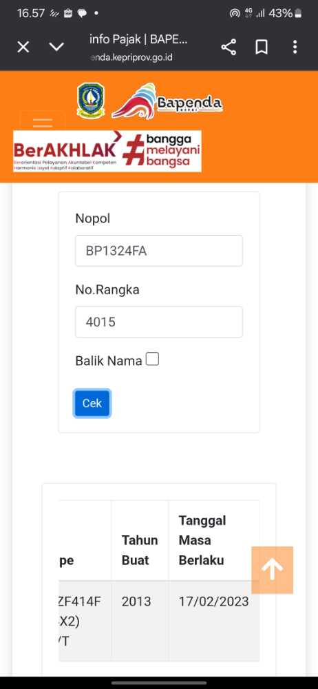 | No. Polisi | : | BP1324FA |