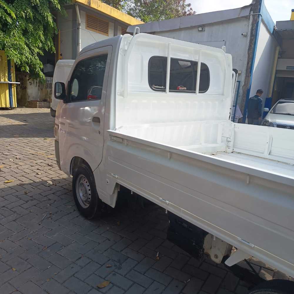 | Fitur Kendaraan Mesin 1.5L bensin 4-silinder Transmisi manual 5-percepatan Power steering Speedometer analog Kursi depan 2-penumpang Pintu kunci ganda Kaca manual Ground clearance tinggi Bak belakang luas untuk angkut barang Suspensi kuat untuk beban berat Kapasitas angkut besar (standar pick-up) Catatan Hasil QC Kategori : A -Layak pakai dengan tanda pemakaian wajar Tape/Head unit bukan bawaan pabrik, pada unit ini memang tidak tersedia. Stop lamp belakang masih menyusul/belum terpasang. Headlamp depan terdapat lecet pemakaian, fungsi penerangan masih normal. Plafon kabin terlihat berbulu akibat usia pakai Karpet bawah jok dalam kondisi sobek akibat pemakaian |