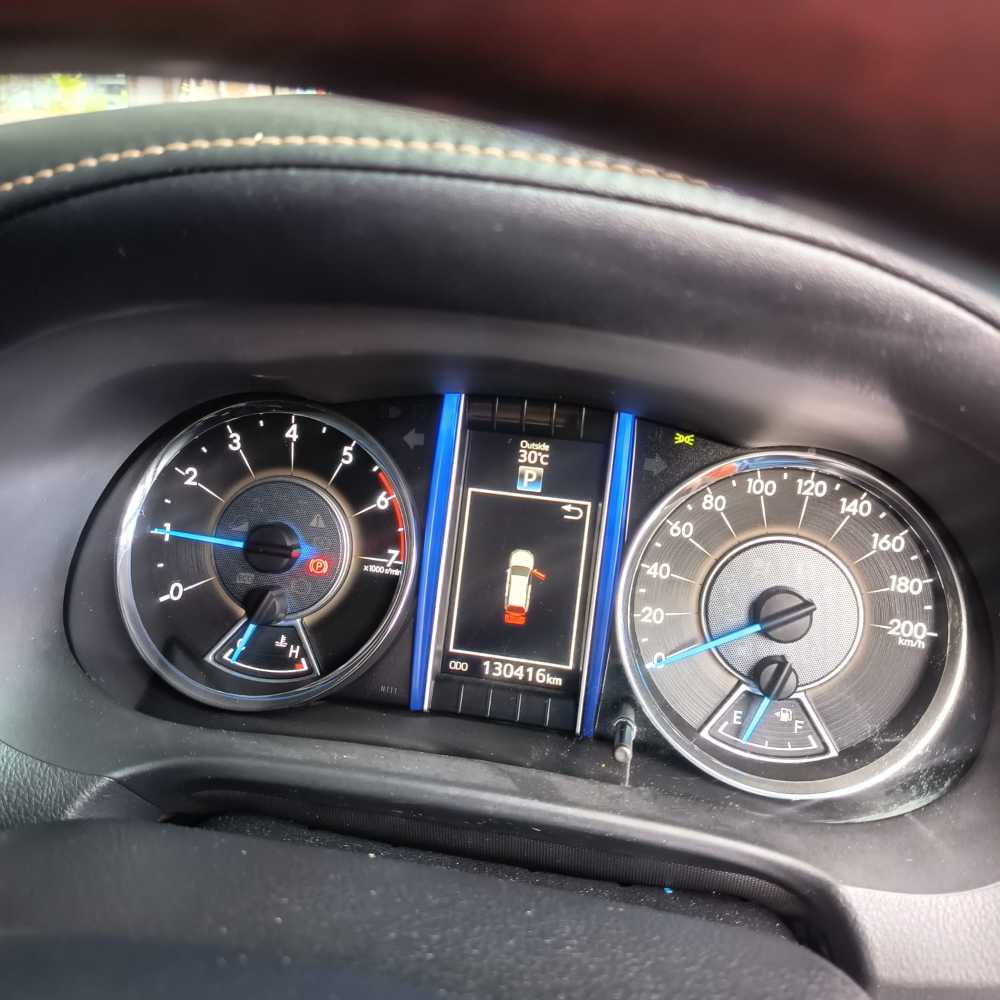 | Fitur Kendaraan * Mesin bensin 2.7L Dual VVT-i * Transmisi otomatis * Smart key & push start * Head unit layar sentuh + Bluetooth/USB * Kamera belakang & sensor parkir * AC digital (double blower) * Cruise control * Airbag & ABS + EBD + BA * Vehicle Stability Control (VSC) & Hill Assist * Lampu LED + * Velg alloy 18 inci Catatan Hasil QC Kategori : A -Layak pakai dengan tanda pemakaian wajar Pijakan kaki mengalami lecet akibat pemakaian, terlihat goresan halus Frame terdapat bekas lem/tape, indikasi pernah dipasangi aksesori |