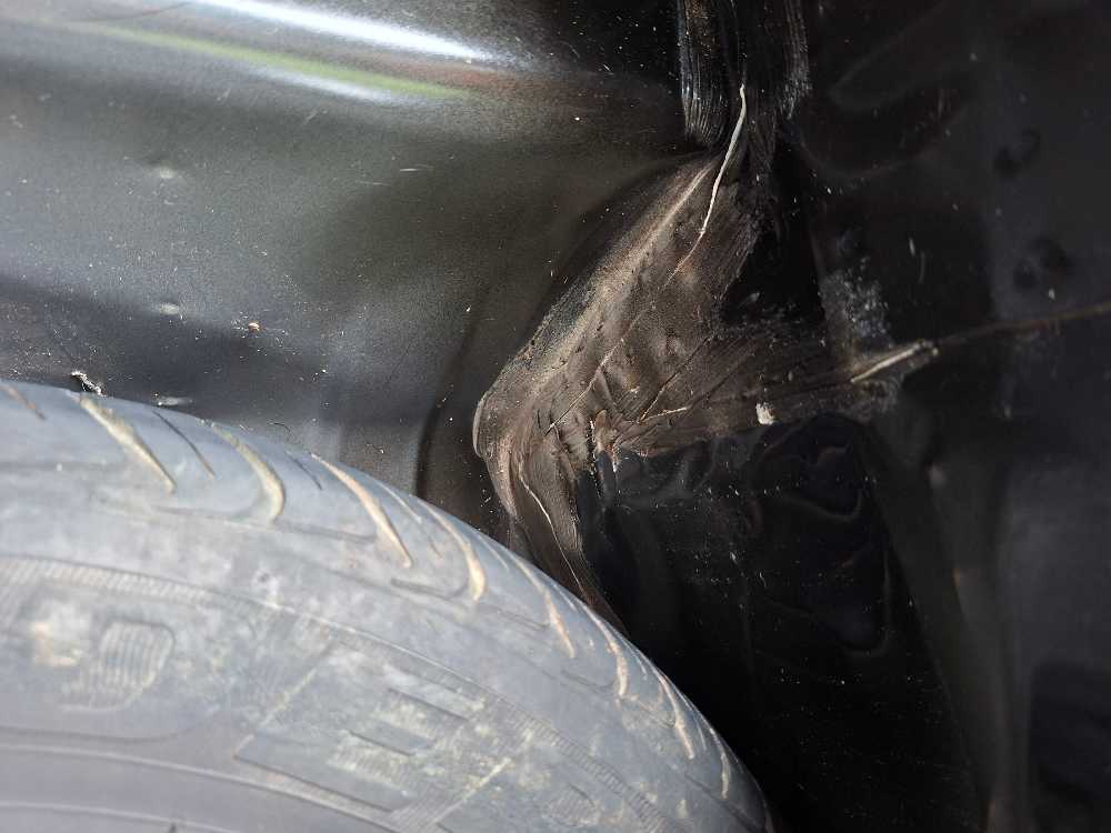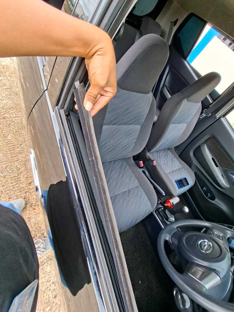 - Karet plipit kaca supir terlepas sebagian.