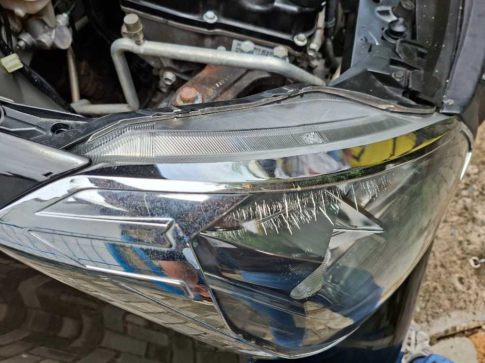- Mika lampu depan retak, foglamp kiri berembun.