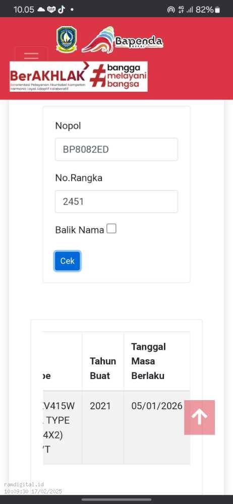 | No. Polisi | : | BP8082ED |