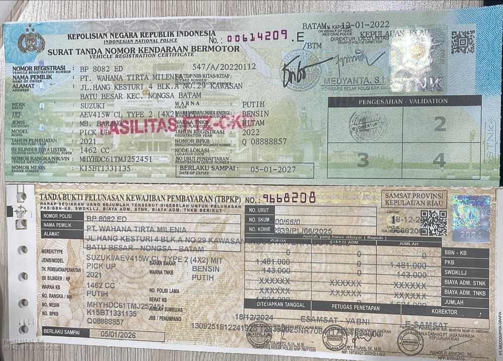 | Nama Kendaraan | : | SUZUKI CARRY PICK UP WD 2021 |