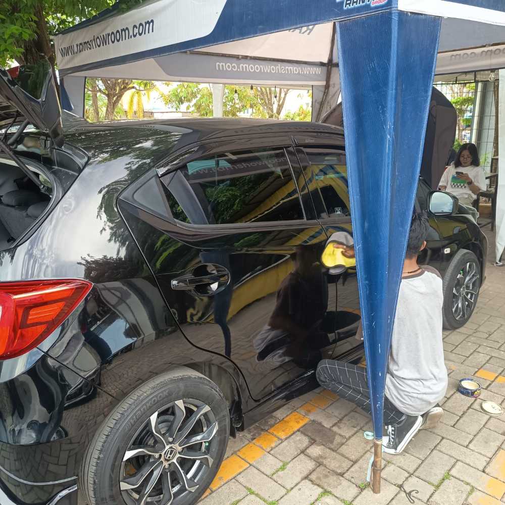 | Fitur Kendaraan * Lampu halogen + DRL * Spion elektrik + sein * Head unit * Audio steering switch * AC digital * Dual SRS airbag * ABS + EBD * Alarm + immobilizer * Mesin 1.2L i-VTEC * Transmisi CVT (halus & irit BBM) Catatan Hasil QC Kategori : A -Layak pakai dengan tanda pemakaian wajar * Velg sudah menggunakan model racing (aftermarket) dengan desain lebih sporty, * Ruang ban serep terdapat lecet pemakaian, tidak mempengaruhi fungsi * Kendaraan sudah dipasangkan body kit tambahan (aftermarket) Knalpot sudah menggunakan model racing (aftermarket), |