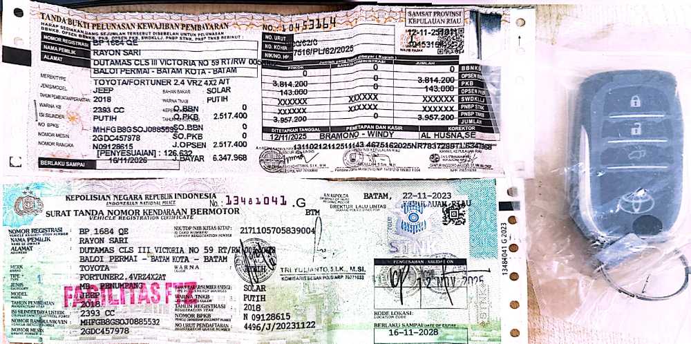 | Nama Kendaraan | : | TOYOTA FORTUNER 2.4 VRZ 4X2 2018 |