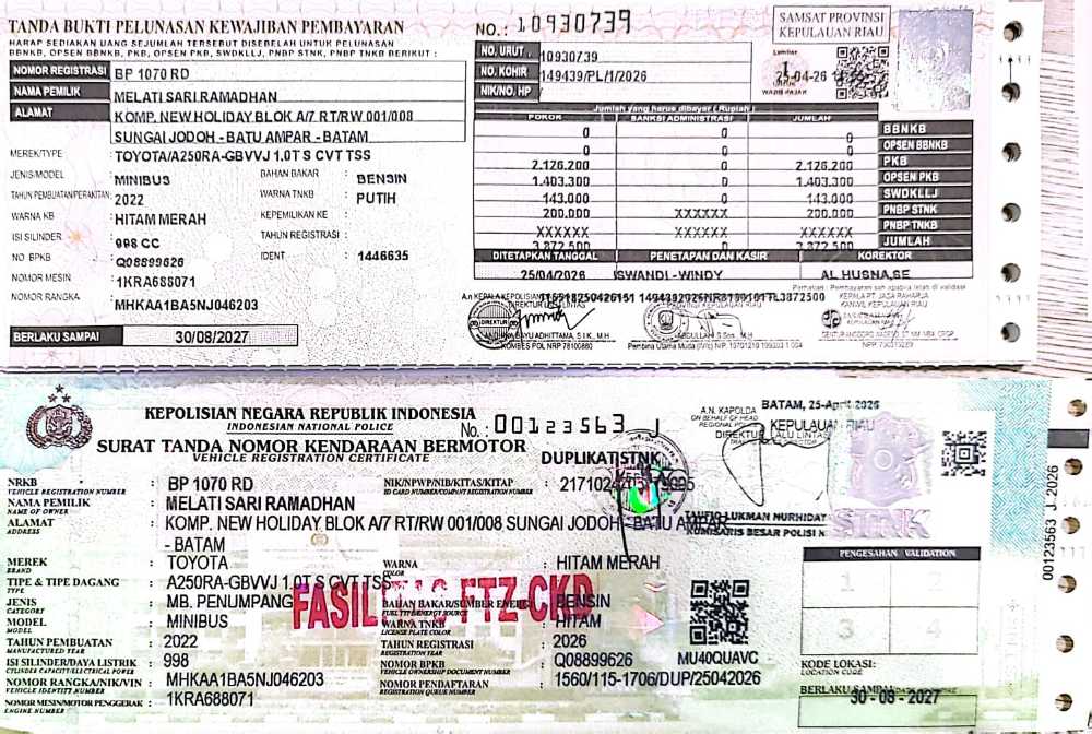 | No. Polisi | : | BP1070RD |