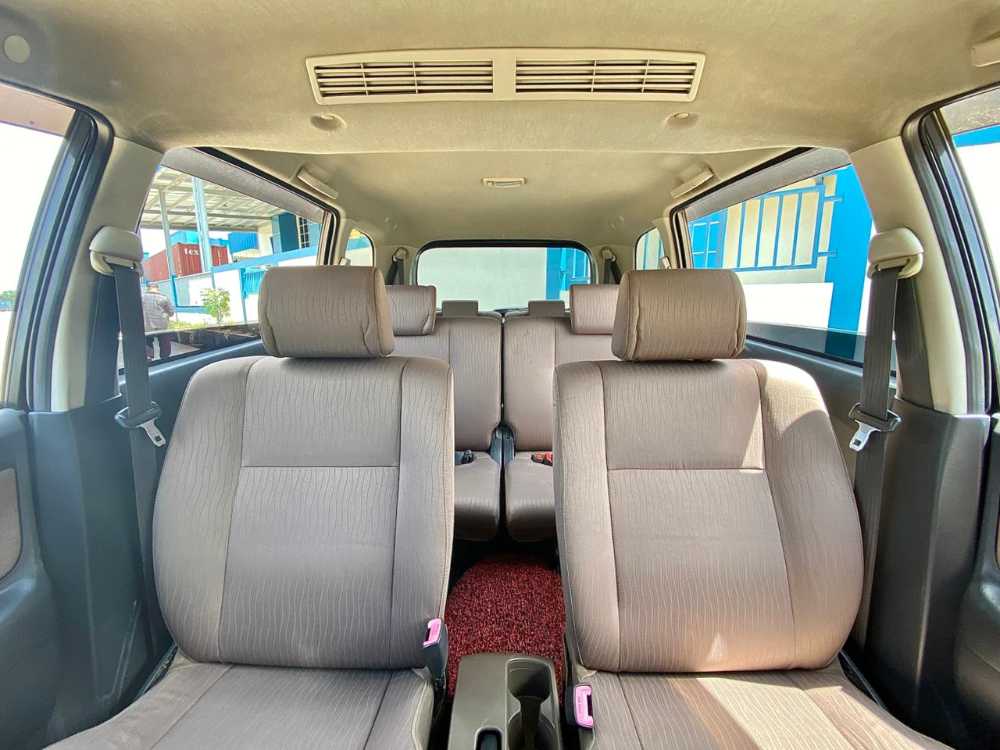 | Fitur Kendaraan Mesin 1.3L bensin Transmisi Manual Power steering AC Power window Central lock Double blower Head unit Dual airbag ABS (tergantung varian) Kursi baris ketiga Velg alloy Catatan Hasil QC Kategori : B -Layak pakai dengan tanda pemakaian wajar Fender belakang kiri, pintu depan kiri, serta list pang kanan bawah mengalami lecet ringan, indikasi pemakaian. List pang kanan bawah terdapat bekas lem Alteco Kaca spion kanan dan kiri mengalami penurunan kualitas akibat usia. Pengarah kisi-kisi AC mengalami kerusakan berupa patah. Ban serep mengalami keausan, ketebalan tapak berkurang dan tidak optimal |